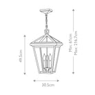 The clean and classic design of Alford Place large chain lantern features a precision die-cast frame, paired with a sealed glass roof, providing excellent illumination from all sides. IP44 rated.