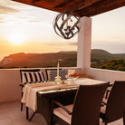 A spiral sensation, the Blacksmith's bold ironwork moves in soft curves along an orb-shaped silhouette. The old black finish includes accents of charcoal and dark silver for a sultry, smoke-like effect. The candles are fitted with cylindrical shades in frosted glass that soften the light of this stunning collection. Made to IP44 spec, this range is ideal for outdoor living areas.