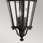 The classic styling of the Cotswold Lane collection features the look of architectural moulding at the top of each pane of clear bevelled glass. This adds to the more formal, traditional aesthetic of this antique gas lantern-inspired collection.