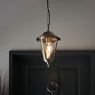 An outdoor pendant lantern constructed from stainless steel and polycarbonate, and comes with a clear vandal resistant diffuser. Dimmable, suitable for use with LED lamps and height adjustable at time of installation. Only suitable for use in covered porches.