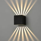 Matt black finish cast aluminum exterior LED wall lights. Designed to be inconspicuous until lit. When illuminated, beautiful patterns are cast on the wall. Rated IP54. Non-dimmable.
