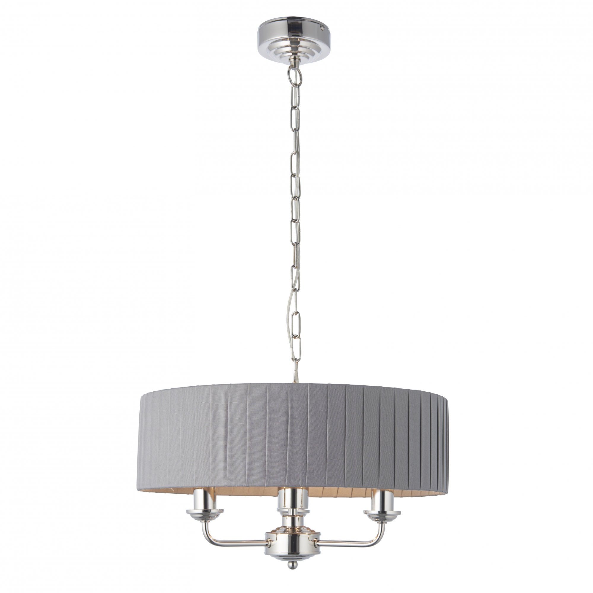 Highclere Pendant Light Nickel Wrapped Charcoal Silk Shade 3 Light