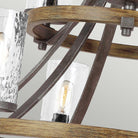 Influenced by both rustic and industrial designs, the Angelo collection celebrates the beauty of rugged imperfection. The thick wavy glass shades complement the two-toned finish of Distressed Weathered Oak and a richly textured Slated Grey Metal finish.
