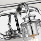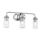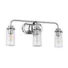 There's so much to love about the reclaimed style of this 3 light bath light from the Braelyn collection. The vintage industrial design is punctuated with Clear Seedy Glass shades, reminiscent of glass jars that were a staple of 19th century American life. The Polished Chrome finish enhances this style.