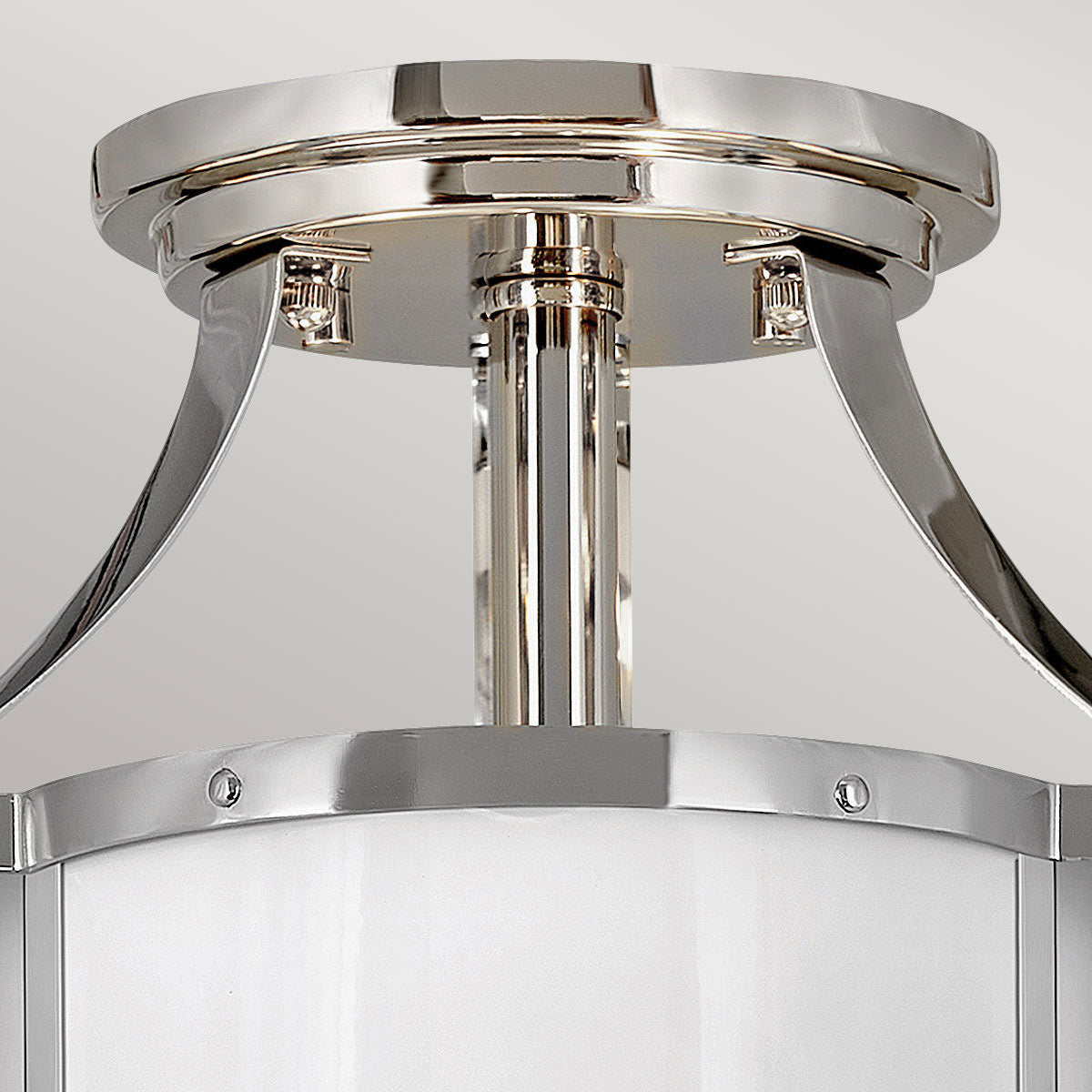 Chance Semi-Flush Ceiling Light Polished Nickel Frame & White Etched Opal Glass Diffuser