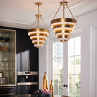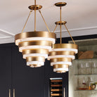 Breathing inspiration drawn from the classic style of Art Deco, Echelon, from Hinkley's Lisa McDennon Collection, is a multi-tier style in a gleaming Heritage Brass finish with alternating rings of faux alabaster.