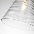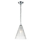The Elmore pendant features Clear Candy glass achieved through a multi-step, artisanal process of wrapping small rods of glass around the glass shade to create a textured, vibrant surface that subtly conceals the light source and refracts the light to create a wonderful sparkle. This spectacular, large scale cone glass shade is available in a Polished Chrome finish.