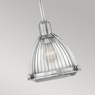 Elroy’s charming mini-pendant design features authentic details like cast knobs, clear ribbed optic glass and bold strap details in a variety of on-trend finish options. Edison style bulbs are the ideal companion, reinforcing Elroy’s versatility and ability to enhance interiors ranging from traditional to industrial to modern farmhouse. Available in a Polished Nickel finish.