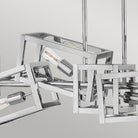 Ensemble's daring silhouette combines layers of sleek edges with rich, gleaming finishes to create a captivating form from any angle. 6 light linear pendant available in a polished nickel finish.