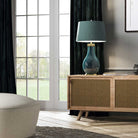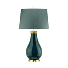 Havering's azure-turquoise ceramic base with its delicate gold detailing will help add a splash of colour to your interior décor. Complete with a Shale Green faux silk tapered shade with gold laminate lining (shade ref: LSUK033)
