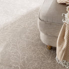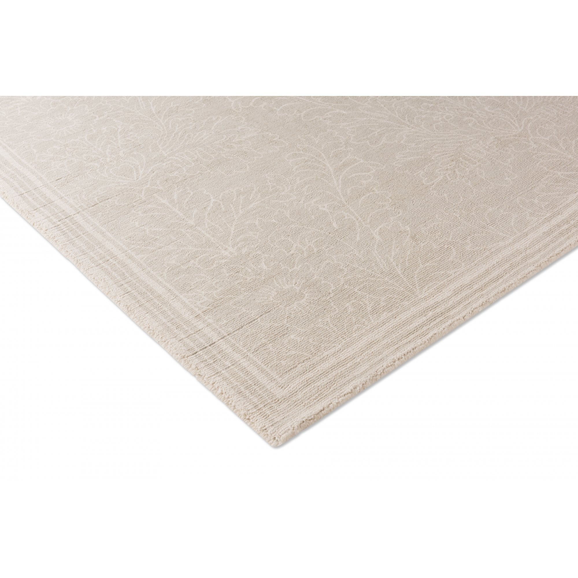 This beautiful soft damask is designed in an arts and crafts style. The Silchester rug features subtle textured outlines of leaves bounded in a frame of hand drawn lines. The quality of the rug is a beautiful cotton handloom where the pattern is screen printed.