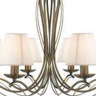 Antique brass 8 light ceiling fitting with cream string shades creates a classic look in any bedroom, living room, dining room or kitchen. The traditional brass finish creates an attractive focal point for any ceiling and the eight light fittings, with matching cream shades, cast beautiful light and shadows across the entire room.