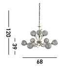 Antique brass 9 light fitting with clear glass shades and leaf decoration makes an imposing centrepiece for any bedroom, living room, dining room or kitchen ceiling. This ornate antique brass finish fitting is beautifully crafted, with leaf decoration and nine clear glass and antique brass flower head spheres, which refract the light around the room beautifully.
