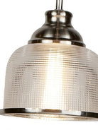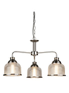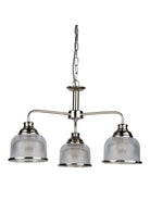Crafted from mild steel and glass, this beautiful 3 light fitting looks fantastic when placed in a kitchen. It has a classic feel to the item with a mix of holophane glass and satin silver. The textured feel of the holophane glass acts as a diffuser to the lights.