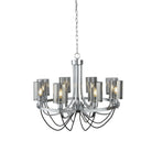 This 8 light fitting includes chrome, black braided cable detail and smoked glass shades to create a feeling of style. The black braided cable updates the traditional element and adds a modern edge. Suspend from a dining room ceiling above a large table to compliment the charming item.