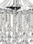 Chrome 5 light chandelier with clear crystal buttons and drops is unmistakably bold and stylish. The five lights are adorned with chunky crystal buttons and drops, which refract the light beautifully, and the elaborate chrome finish fitting has cascading crystal beads, from the top of the fitting to the main frame. It makes a statement in any bedroom, living room or dining room