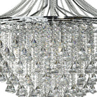 Chrome 7 light chandelier with clear crystal buttons and drops looks majestic in any bedroom, living room or dining room. The seven lights are adorned with chunky crystal buttons and drops, which refract the light beautifully, and the elaborate chrome finish fitting has cascading beads, from the top of the fitting to the main frame. It makes a statement in any room and is fabulous talking point.
