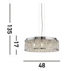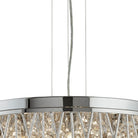 Searchlight 8337-7CC - Elise 7 Light Fitting with Crystal Button Drops and Aluminium Tubes Trim makes a bold centrepiece for any bedroom, living room, dining room or kitchen. The circular chrome finish fitting has aluminium tubes in a criss-cross and straight-lined pattern around the outside. And the centre of the fitting is adorned with clear crystal button drops, which sparkle beautifully when the lights turn on. The wire suspension can be adjusted for different ceiling heights.