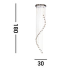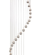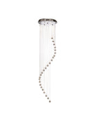 The stunning Hallway multi-drop pendant light is dressed with crystal balls forming a spiral hanging from a circular chrome ceiling fitting. Lit by 5 lights from above and hanging 1.8 metres, the crystals appear to float in mid air and sparkle beautifully when illuminated to add an upmarket feel to any hallway or staircase