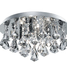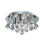 Add a dazzling effect to your bathroom using this striking Hanna flush fitting with clear pyramid crystal drops light in chrome. The four lights suspend from a chrome base and the crystal drops add a particularly elegant touch. Add as a centre piece to any sophisticated bathroom. This item has a rating of IP44, meaning that it is fully splash proof and suitable for use in a bathroom setting. LED's use up to 75% less energy and last up to 20 times longer than incandescent bulbs.