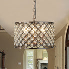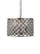A rustic antique copper fitting with complimenting glass tear drop trim. The large drum pendant features intricate glass embellishment which looks beautiful against the light when lit. Suspend from a high ceiling in a hallway to turn heads.