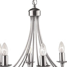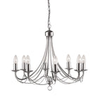 Satin silver 8 light chandelier features lavish arms draping and swooping outwards for an opulent effect. The eight candle holders are mounted on long curved arms suspended from a satin silver ceiling plate and the rich, layering effect creates a dreamy look that is both elegant and modern for your living room, bedroom, hallway or dining area.