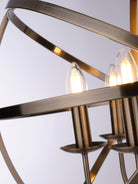 The spherical fitting has a beautiful style and an elegant presence that would make a great centrepiece for any contemporary living space. Each of the four rings making up the orb are finished in a traditional antique brass and interlink to create a magnificent spherical pendant, and the six candle lights positioned centrally provide more than sufficient illumination for any room.