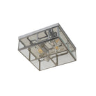 This Pisa chrome 2 light flush fitting with clear glass shade looks stylish in any traditional home. The two opposing lamps are housed in an attractive chrome finish and bevelled glass box, made up of individual square finishes of polished chrome and glass, which looks interesting and unique.