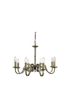 This 8 light antique brass ceiling fitting is perfect for today's understated interiors. Styled on a minimalist design, the chandelier is characterised by its traditional candle style sconces at the end of the eight curved, antique brass finish arms for a simplistic, less complicated look. The chain suspension can be adjusted easily to provide the ideal illumination for any living space.