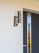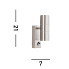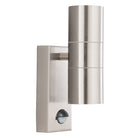 This Stainless Steel 2 Light Outdoor Light with Motion Sensor is perfect for welcoming you home and deterring would-be intruders. The rectangular wall attachment features a modern motion sensor connected to a stylish cylindrical light, with two lamps providing both uplight and downlight. It is also IP44 rated and fully splashproof to protect against the elements. Complete with LED lamps.