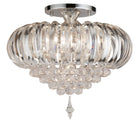 The Sigma 5 light semi-flush ceiling fitting is a striking blend of vintage elegance and bold silhouettes. The chrome finish frame is adorned with clear balls and draped in cascades of shimmering acrylic prism curves which reflect the five lights beautifully for a glamorous elegance that will making a magnificent centre piece to any living space or hallway.