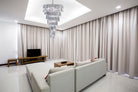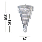 9 light chandelier is a striking blend of vintage elegance and bold silhouettes. The chrome finish frame is draped in cascades of shimmering acrylic prism drops which reflect the nine lights beautifully for a glamorous elegance that will make a magnificent centre piece to any large living room or hallway. The chain suspension can be adjusted for different ceiling heights.