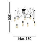 9 lamp ceiling light and will be the statement piece of any space. Swagged cables enable customised hanging positions dimmable to let you choose your desired light output, co ordinating items available in this range.