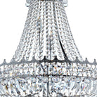Chrome 13 Light Chandelier Trimmed with Crystal looks stunning in any main room or entrance. The vast traditional chandelier is brimming with intricate trimmed crystal which hangs in, around and below two beautiful crowns finished chrome. It looks amazing when the thirteen lights are lit up at night and makes a bold statement in any home.