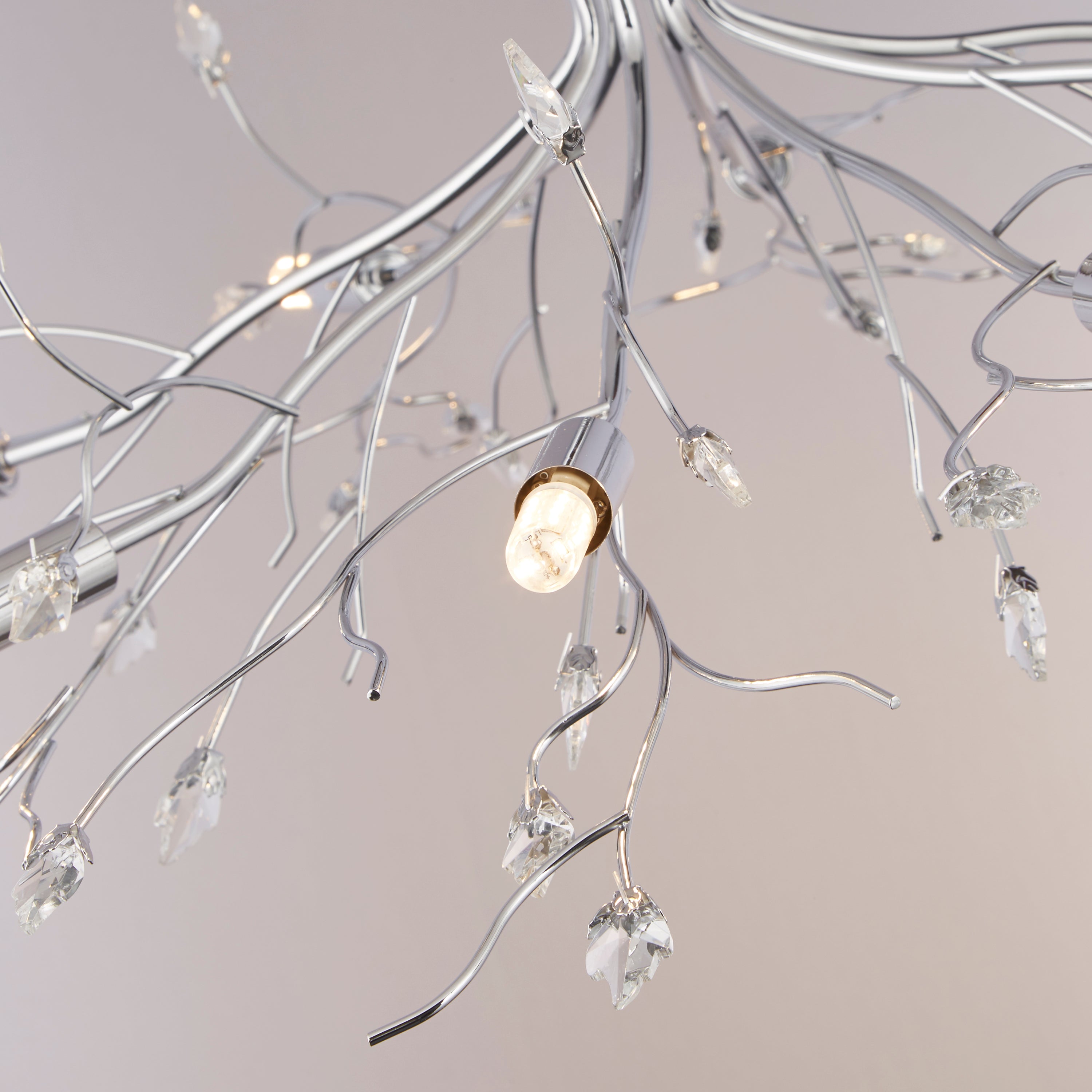 For a touch of elegance, Searchlight's chandelier collection features intricate designs with crystal embellishments and multiple light sources. These light fixtures add a luxurious ambiance to formal settings like dining rooms and entryways.