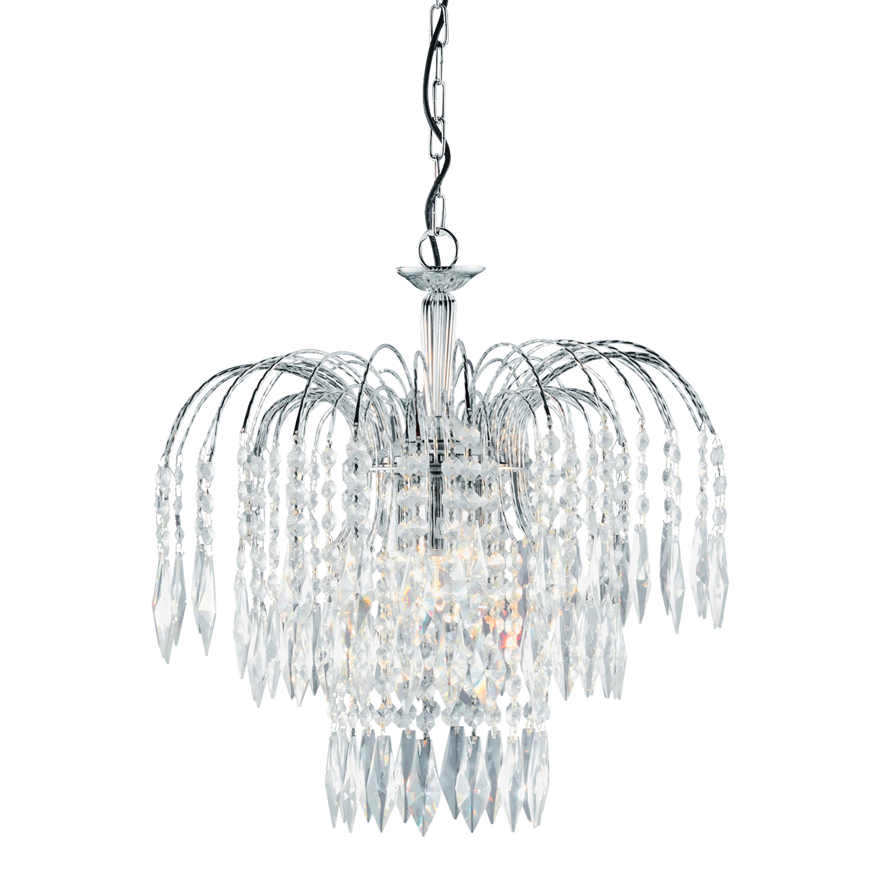 For a touch of elegance, Searchlight's chandelier collection features intricate designs with crystal embellishments and multiple light sources. These light fixtures add a luxurious ambiance to formal settings like dining rooms and entryways.