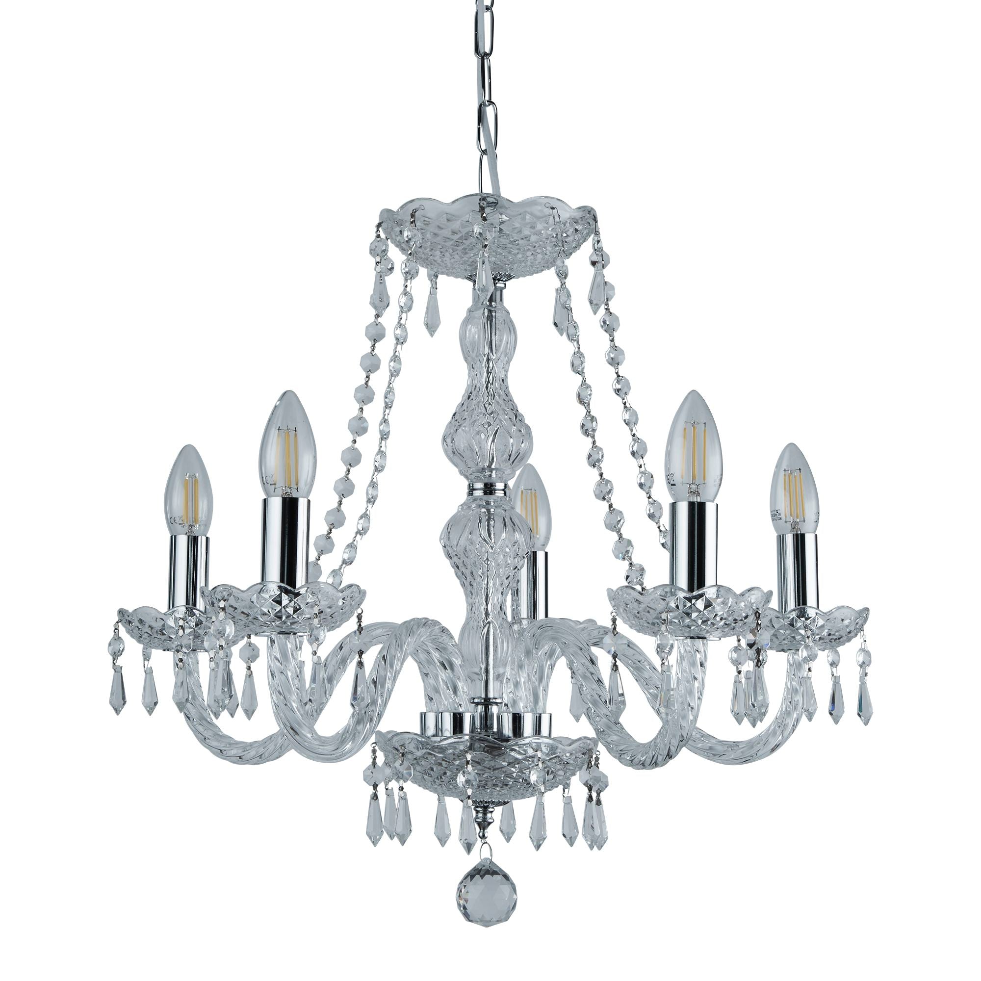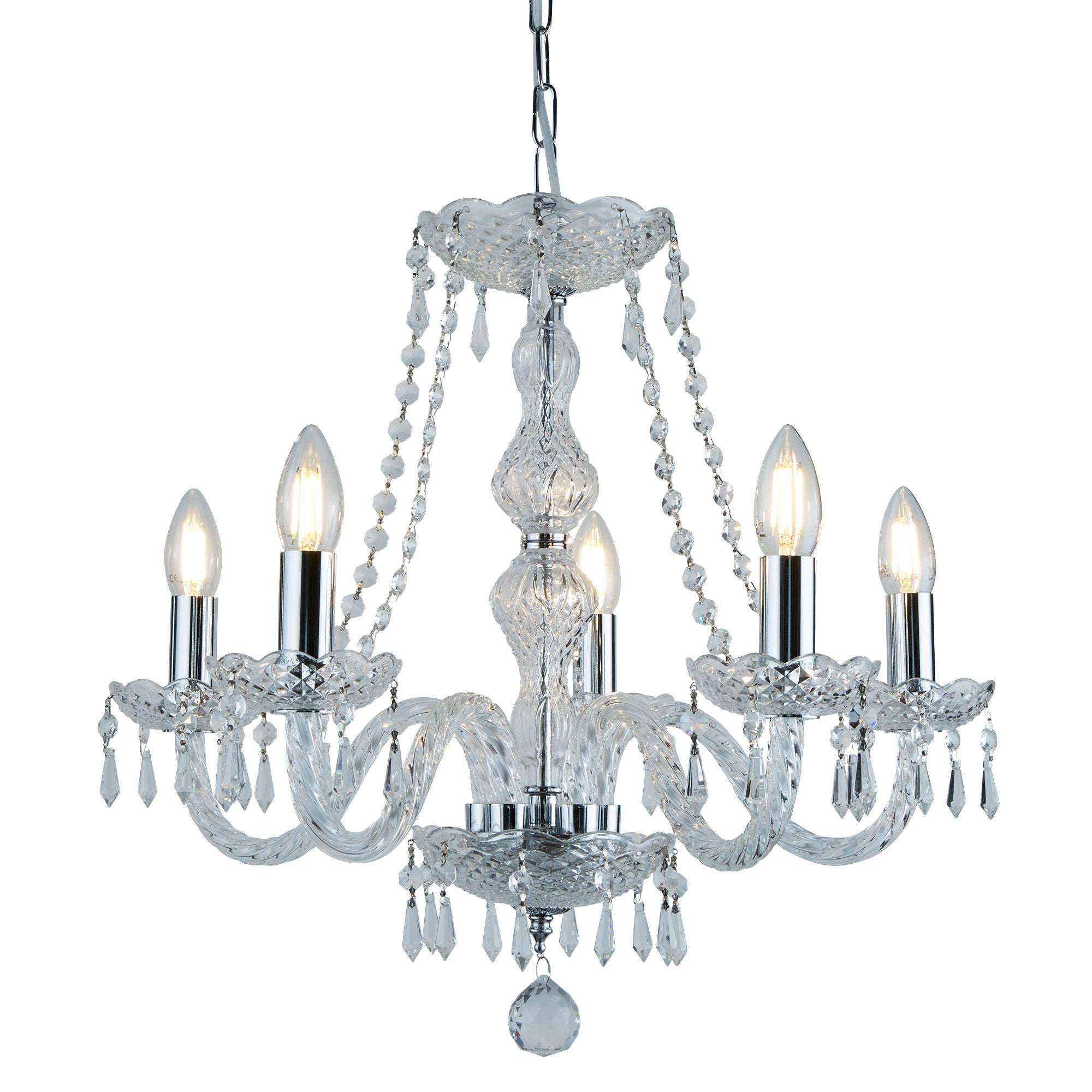 For a touch of elegance, Searchlight's chandelier collection features intricate designs with crystal embellishments and multiple light sources. These light fixtures add a luxurious ambiance to formal settings like dining rooms and entryways.