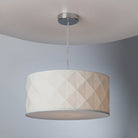 dar Lighting’s Aisha is a contemporary geometric faceted non-electric pendant in smooth white cotton. Lined on both sides, this shallow drum shade comes complete with a removable, white cotton diffuser so it can be suspended at a variety of heights without causing dazzle.