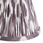 16cm tapered shade with clip gimbal to fit golf or candle bulbs. Unique Ikat pattern design in pearl grey with taped edge detailing and plain inner lining. Perfect when paired with one of our beautifully decorative table lights, wall lights, rechargeables or chandeliers.