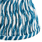 16cm tapered shade with clip gimbal to fit golf or candle. Ripple pattern in marlin blue colour with taped edge detailing and plain inner lining. Perfect when paired with one of our beautifully decorative table lights, wall lights or chandeliers.