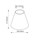 25cm tapered shade with white gimbal. Zigzag pattern in Cotswold green colour with taped edge detailing and plain inner lining. Perfect when paired with one of our beautifully decorative table lights.