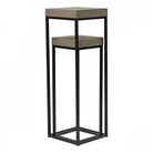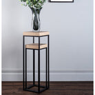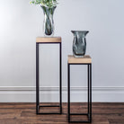The contemporary FABIO nested plant stands feature an oak effect finish with black metal legs. Ideal for saving space as they perfectly nestle away when not in use.