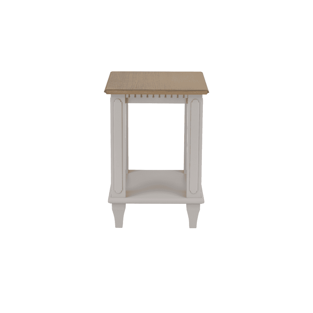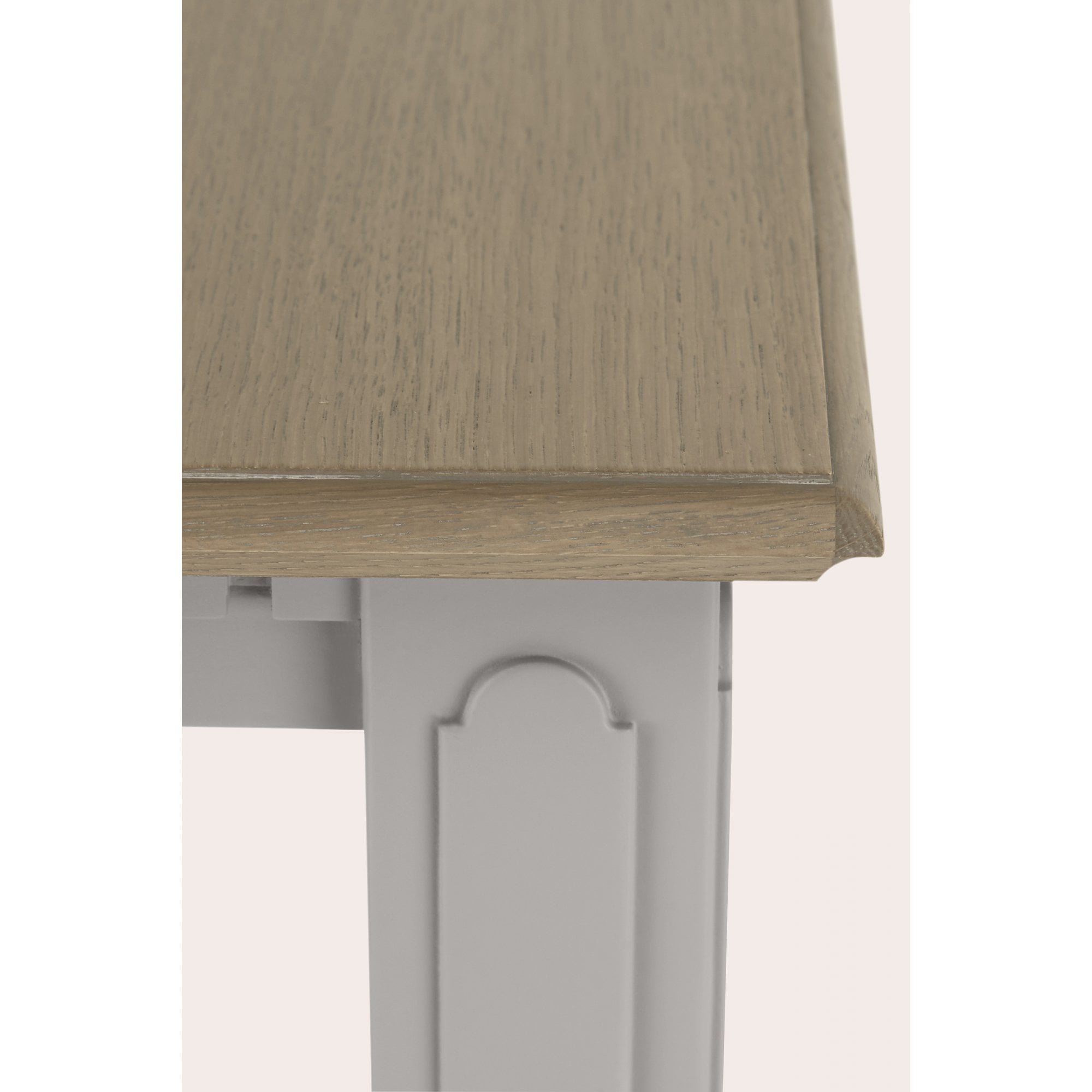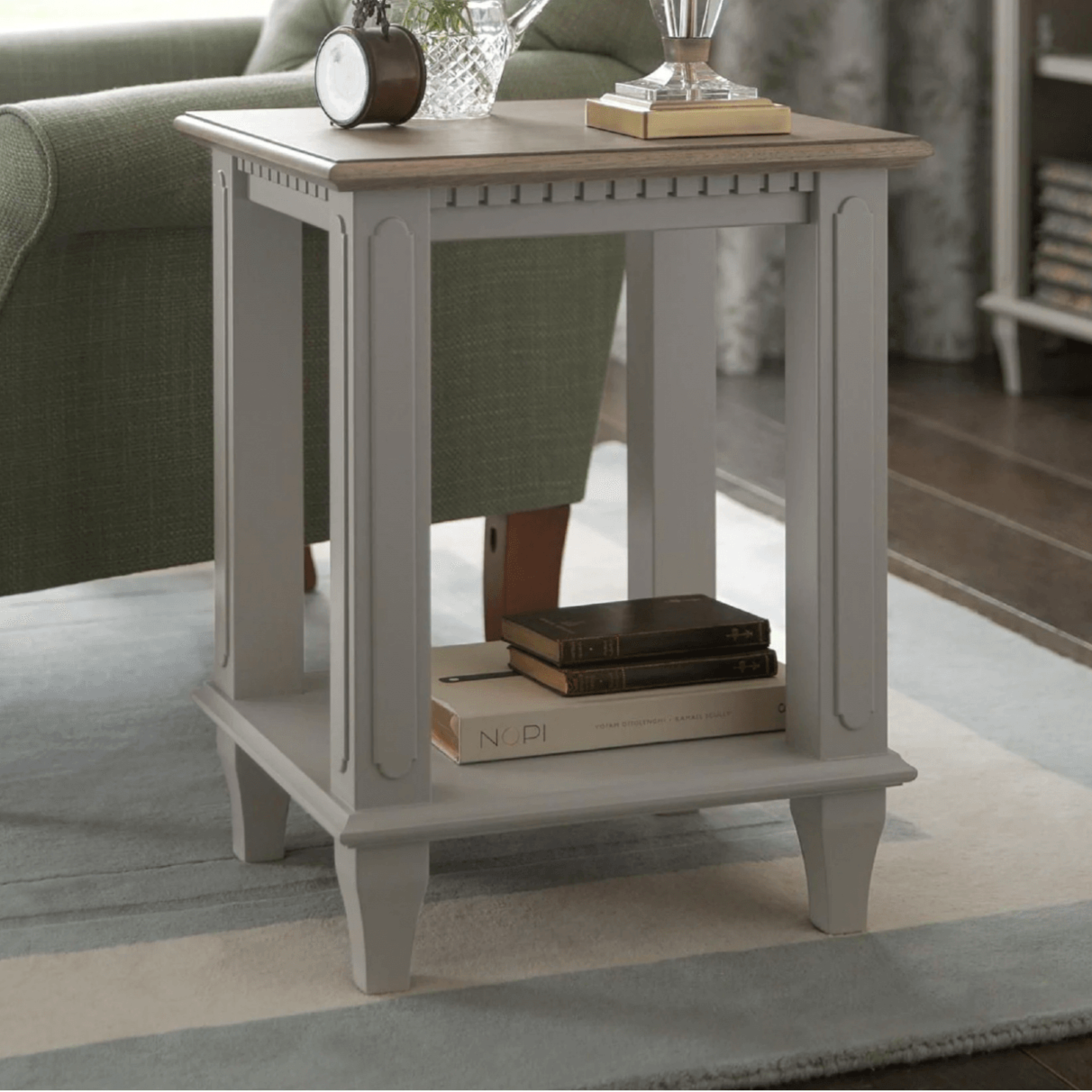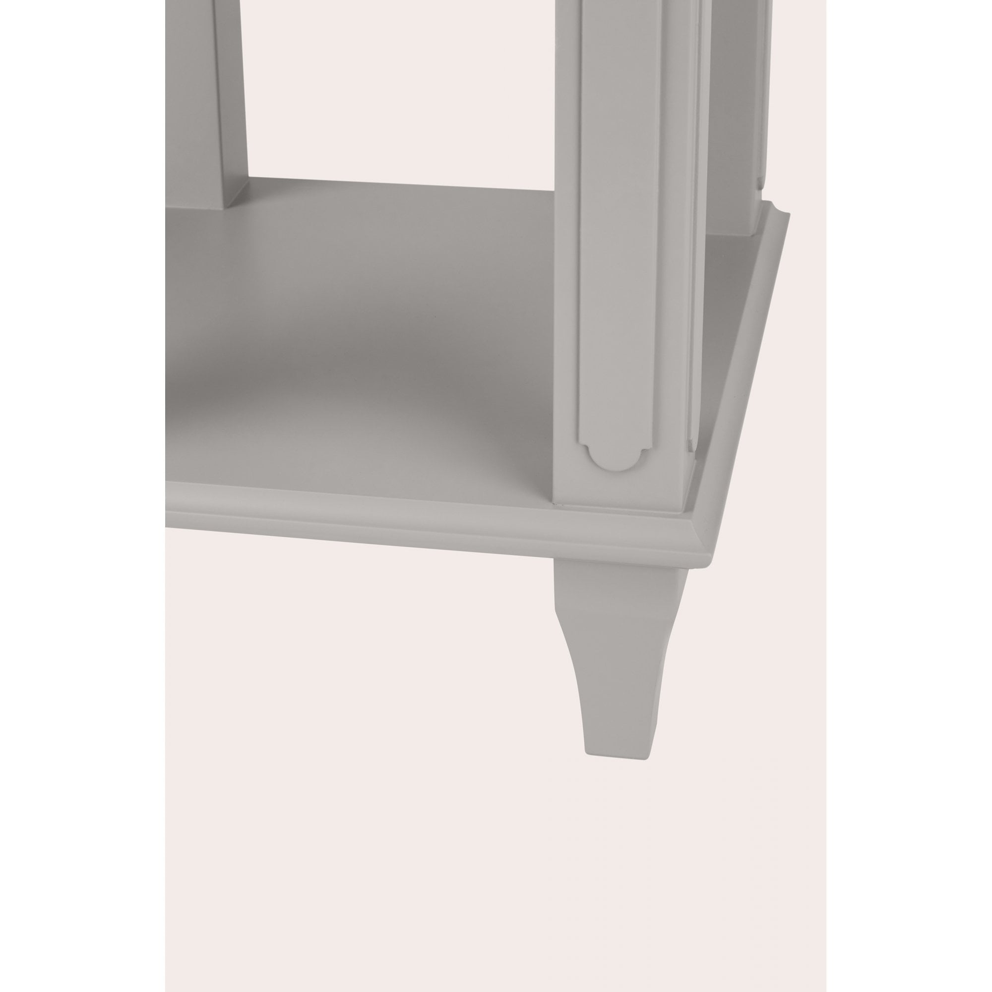 With a nod to neo-classical styling, the Laura Ashley Hanover side table features a lower fixed shelf making it the perfect space for a table lamp. It is crafted from oak and oak veneered modern materials and is spray painted and lacquered for a low-maintenance finish. The top displays natural wood features, grain and colour variation and is further enhanced by a subtle grey patina giving it a gentle aged appearance. Only the legs need to be attached to begin enjoying this piece; full assembly is not required.