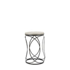 A stylish and practical side table with a gold hammered table top and clean cut metal legs in a curved spiral design, adding a cool and industrial look to your interior.