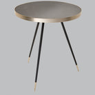 Add a touch of refined glamour to your home with the Mael H60cm Side Table. Its elegant antique brass frame supports a stunning caviar marble top, showcasing its unique veining and depth. The sleek black legs provide a modern grounding, creating a sophisticated and versatile piece for any room.