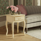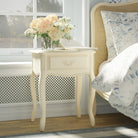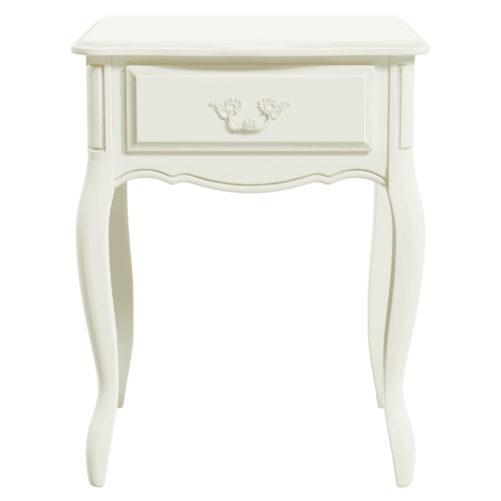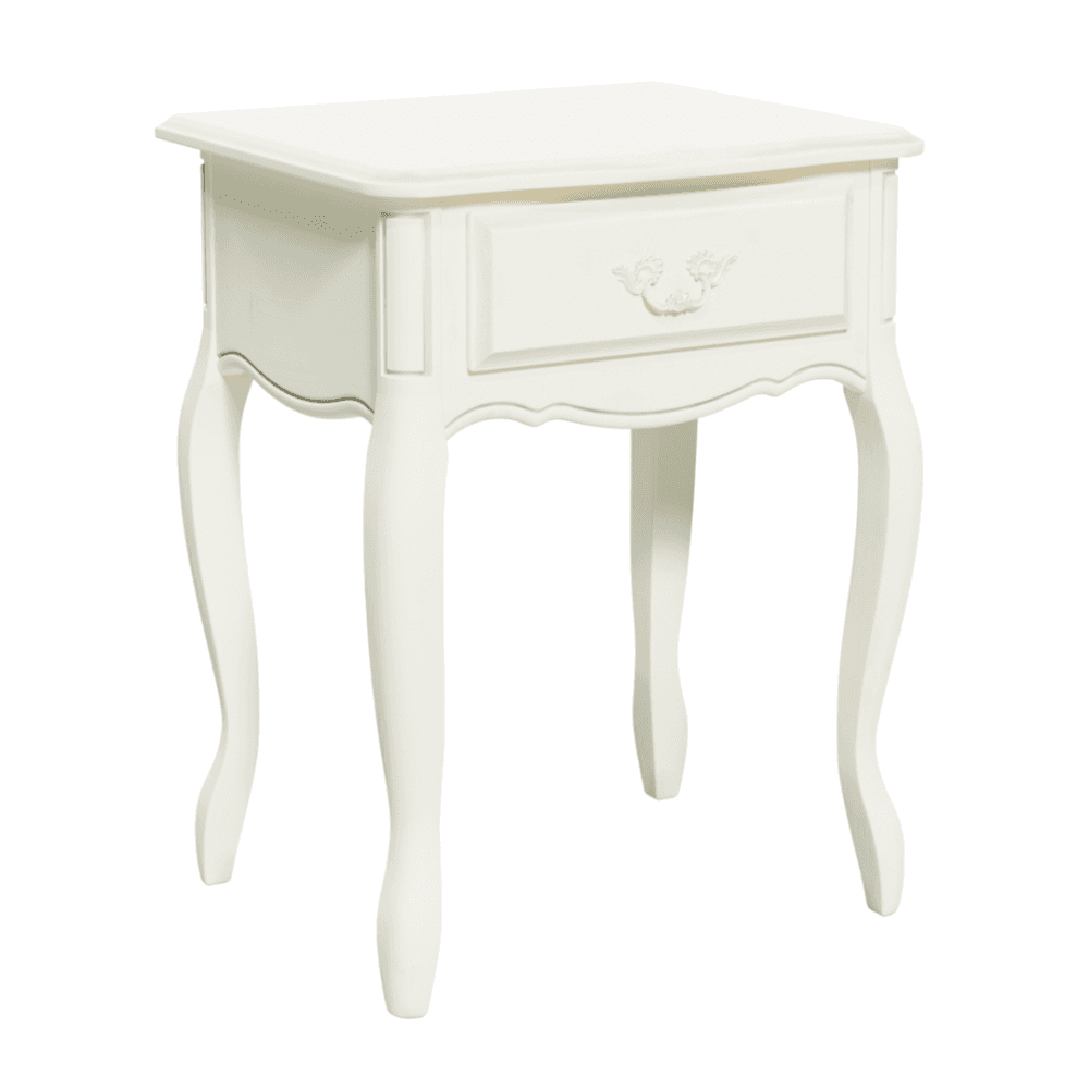 The Laura Ashley Provencale 1 Drawer Side Table exemplifies the beautiful proportions and intricate detailing of Rococo French furniture. The table features elaborately sculpted legs and shaped aprons and is equally at home in a living room or as a bedside table. It features a single drawer dressed with an authentic florid handle particular to the style. The typical curved corners of the piece are further complemented by its inscribed details. All surfaces are finished with a durable yet unassuming paint and a delicately applied patina to selected edges and profiles.