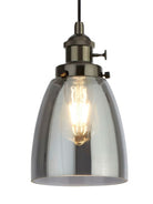 This pendant light has a smoked glass shade and a black chrome fitting. The shade creates a stunning effect when lit and will add a classic style to any room in your home. Use alone or hang several together for a statement look.