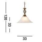 Antique brass pendant light with dome-shaped marble glass shade looks elegant hanging from any ceiling in your home. The swirled marble glass diffuser looks beautiful by day and stunning by night. And the fitting is traditionally finished in antique brass with a swirling decorative wrought iron effect central column. The chain suspension can be adjusted for different ceiling heights.