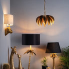 This fun light finished in an antique gold finish is a quirky addition to any interior and looks great combined with tropical print furnishings or wall coverings.