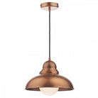 The DYNAMO 1lt Pendant features an antique copper ceiling plate and a metal retro-styled shades in antique copper and comes complete with an opal white diffuser.